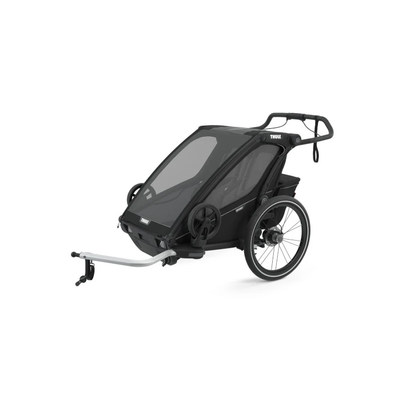 Les parents sportifs et leurs enfants vont particulièrement apprécier le chariot Sport 2 de Thule. Polyvalent, il devient tour à tour une poussette biplace lors de vos balades à pied, ou une remorque à accrocher à votre vélo ! Avec les kits Jogging ou Ski (vendus séparément), vous pourrez même l’utiliser pour courir ou faire du ski !