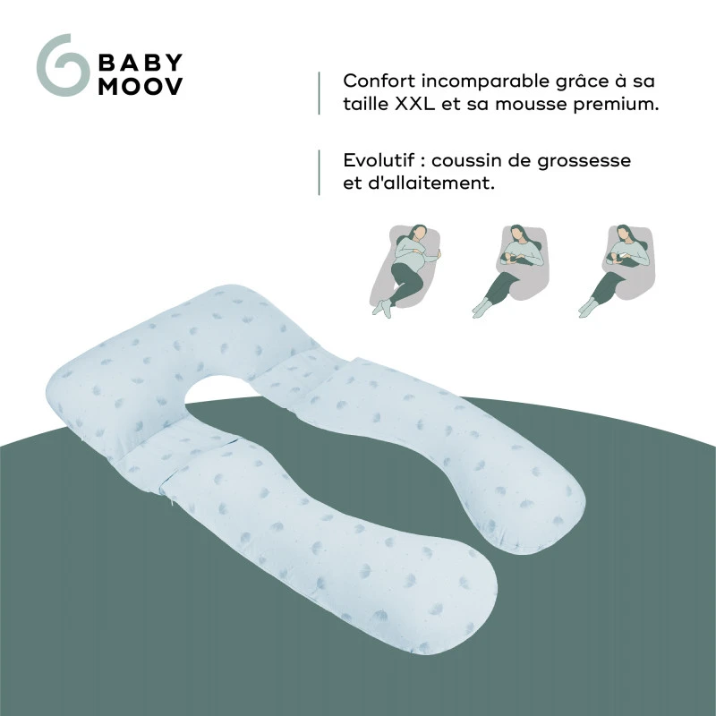 Ultraconfortable, le coussin XXL Babymoov est garni de façon homogène et est doté d’une bonne densité pour un maintien parfait pour retrouver un sommeil réparateur.