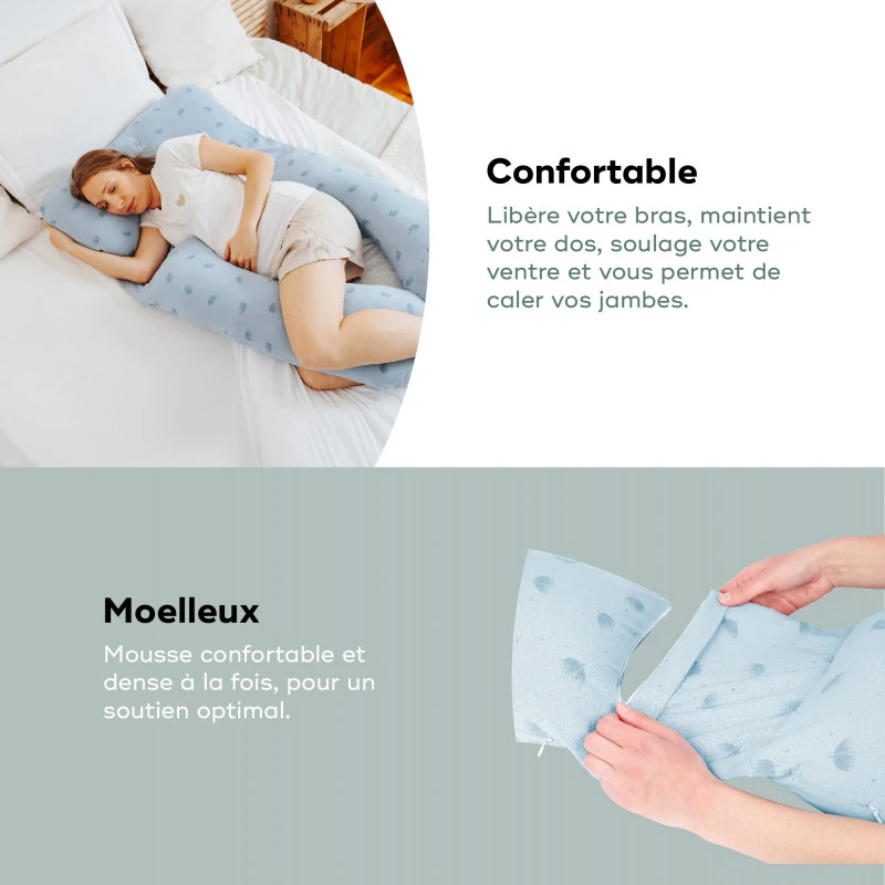 - Forme innovante idéale pour soulager les maux et garantir un sommeil réparateur durant la grossesse.