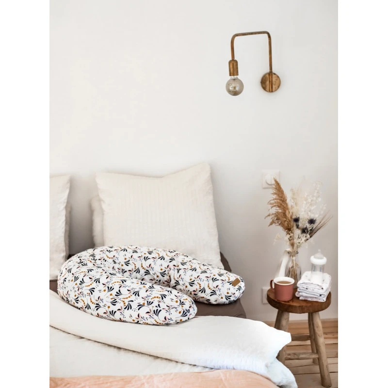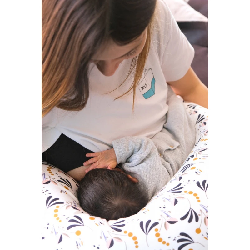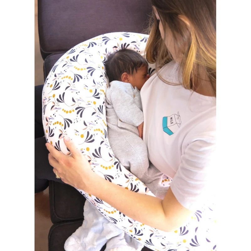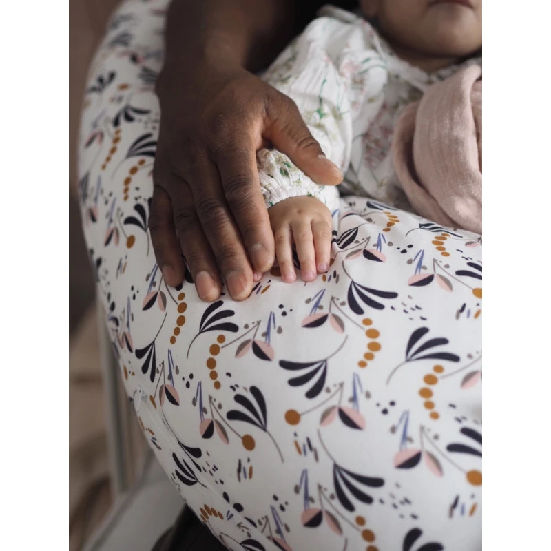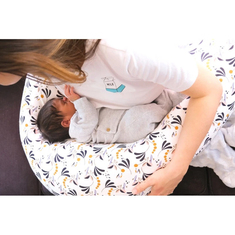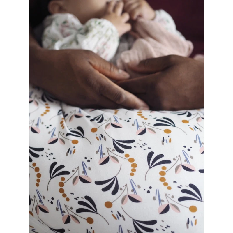Sa forme ergonomique vous apporte soutien et détente pendant l’allaitement ou le biberon. La housse en jersey de coton imprimé procure douceur et bien-être.