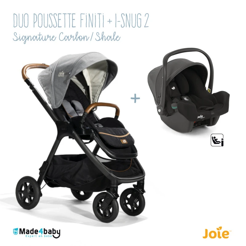 Pour ce Duo composé par Joie, la poussette est accompagnée du siège auto i-Snug 2 qui répond aux exigences de sécurité les plus élevées imposées par la norme R129/03. Il appartient à la gamme modulaire Encore Spinning System, homologuée i-Size : une seule et même base pivotante, la i-Base Encore qui accueille successivement la « coque » i-Snug 2 jusqu’à 12 mois environ, puis le siège-auto i-Harbour jusqu’à 4 ans environ. (Base et sièges vendus séparément)