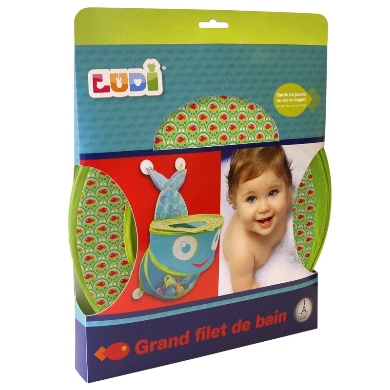 Avec ses couleurs vives et sa forme originale de poisson, ce grand filet de bain Ludi glisse une note joyeuse dans votre salle de bain, et met fin au désordre des jouets éparpillés un peu partout ! Puis, quand votre enfant sera plus grand, il peut même devenir un panier de « water basketball » !