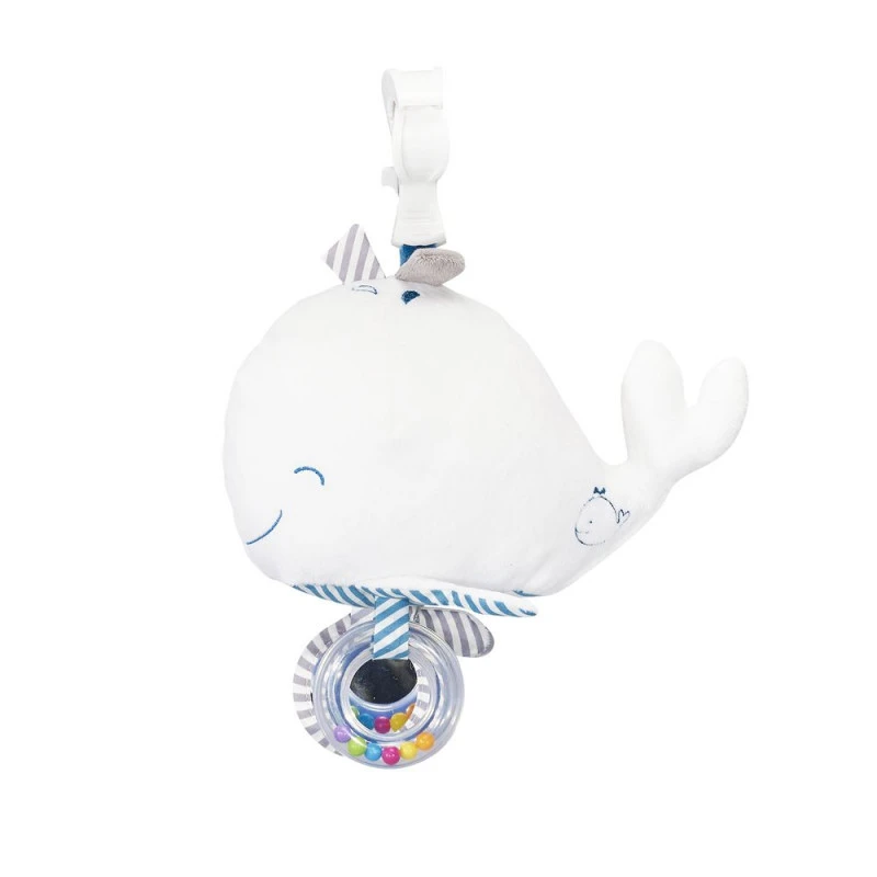 Bébé va adorer ce jouet d’activité en forme de baleine assorti à la collection Blue baleine par Sauthon ! En effet, vous pourrez l’emporter partout grâce à son système d’accroche en forme de pince très résistante : au lit, au parc, à la poussette, dans la voiture, etc… Sa forme originale représente une adorable baleine avec un petit miroir, un hochet à billes et un anneau de dentition, de quoi éveiller bébé grâce à ces multiples activités. Dans les tons de blanc et bleu, c’est une superbe idée de cadeau pour une naissance !