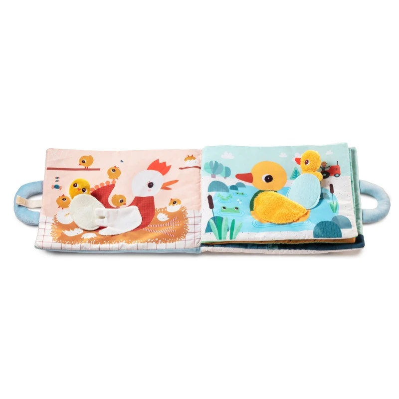 Les naissances se multiplient à la ferme ! Au fil des pages de ce charmant livre d’activités Baby-Boom, réalisé tout en tissu et joliment illustré, votre petit découvre les animaux et leurs nouveau-nés : la cane cachant sous son aile un œuf d’où va apparaître un ravissant caneton, la vache donnant naissance à un veau magnifique, l’âne avec son adorable ânon constamment dans les pattes, ou encore la brebis abritant son irrésistible agneau.