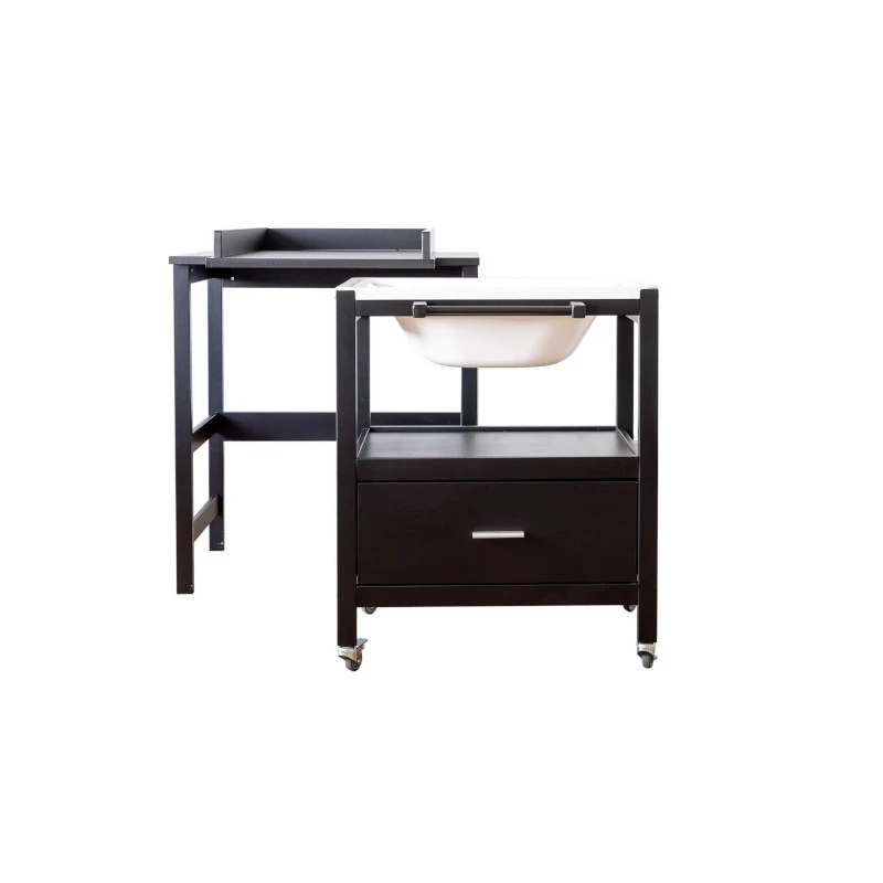 Il est composĂ© d’une table Ă langer et d’une baignoire pouvant ĂŞtre utilisĂ©es indĂ©pendamment l’une de l’autre et Ă©quipĂ© de quatre roulettes pour pouvoir la dĂ©placer facilement.Â