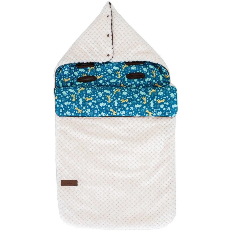 Le nid d’ange réversible Zanimo est idéal dès la sortie de la maternité pour emmitoufler bébé dans un cocon de douceur et de chaleur pendant ses promenades. Totalement pensé pour les tout-petits, il est très pratique grâce à ses 5 ouvertures spécialement conçues pour le passage des sangles du harnais, et s’adapte aussi bien dans la poussette, le cosy, la nacelle, le siège-auto que dans le transat ! De plus, il est très pratique avec sa large ouverture zippée sur le côté et sa capuche amovible ! Dans les tons très doux d’écru, il est décoré d’un bel imprimé bleu ! Bébé sera bien à l’abri, dans des matières toutes douces, au chaud même pendant l’hiver !