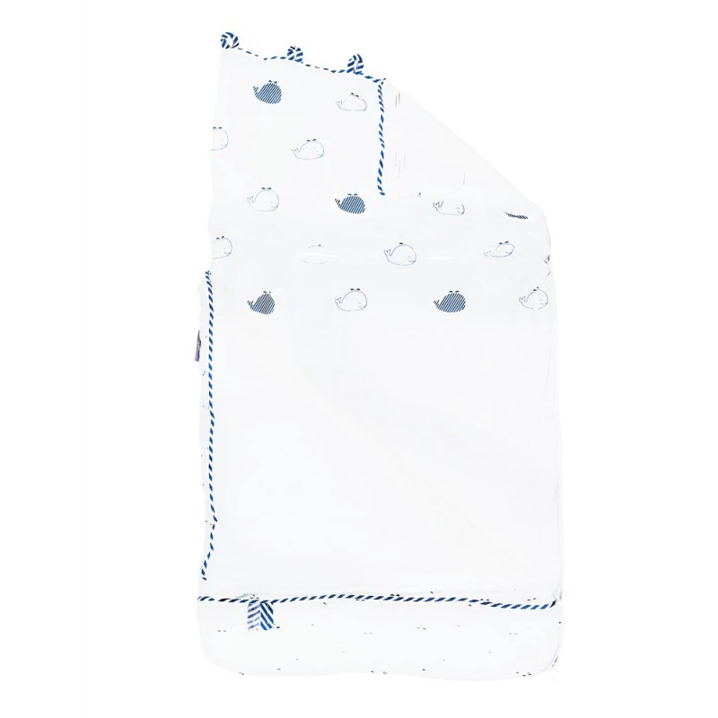 Pour accompagner bébé dès la sortie de la maternité, Sauthon a imaginé ce joli petit nid d’ange assorti à la collection Blue baleine pour emmitoufler bébé dans un cocon de douceur et de chaleur pendant ses promenades. Pratique grâce à ses ouvertures spécialement conçues pour le passage des sangles du harnais, il s’adapte aussi bien dans la poussette, le cosy, la nacelle, le siège-auto et même le transat ! Dans un univers en blanc et bleu où une baleine et ses baleineaux semblent nager à travers les flots, bébé sera bien à l’abri, dans des matières toutes douces, au chaud même pendant l’hiver !