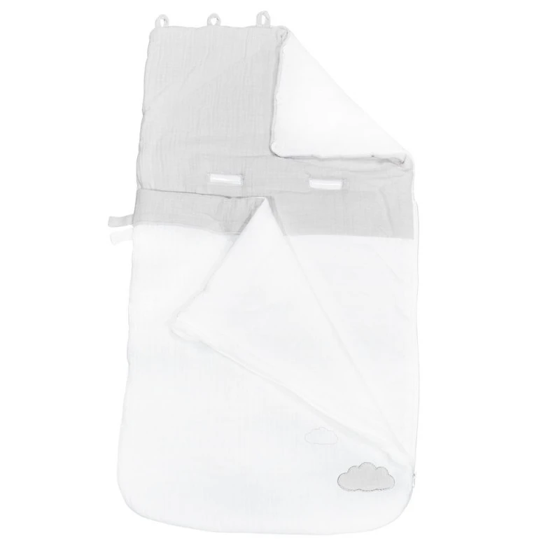 Dans les tons de gris, il est décoré par un joli petit nuage ! Bébé sera bien à l’abri, dans des matières toutes douces, au chaud même pendant l’hiver !