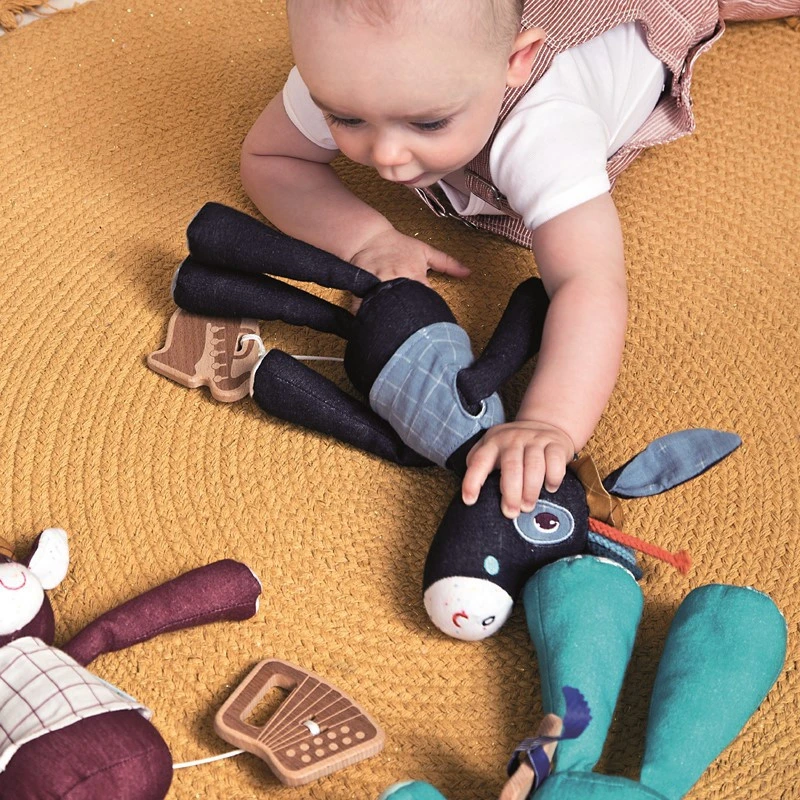 La peluche musicale Ignace des Lilliputiens participe aussi Ă lâĂ©veil de votre bout de chou : ses teintes vives et contrastĂ©es sont faciles Ă distinguer par de jeunes yeux. Ses tissus de textures variĂ©es offrent des sensations diffĂ©rentes sous les doigts et stimulent le sens du toucher. Quant aux multiples dĂ©tails dĂ©licats, comme ses longues oreilles ou ses mĂšches colorĂ©es, ils contribuent Ă amĂ©liorer la motricitĂ© de votre enfant, et en particulier la prĂ©cision de ses gestes.