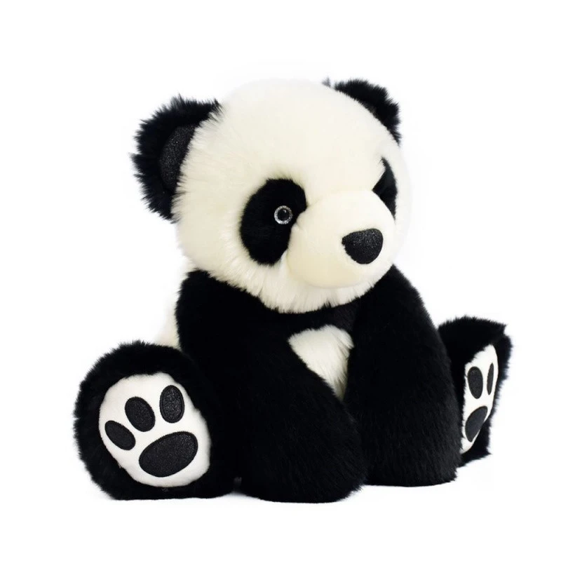 La peluche panda So chic 35 cm Histoire d’Ours possède un beau pelage à poils longs tout doux, blanc et noir comme tout panda qui se respecte. Ses yeux « billes » séduisants sont cernés de brillant, et ses oreilles, son joli museau ainsi que le bout de ses pattes sont pailletés aussi pour être vraiment So chic ! De plus, ce joli personnage tient assis bien sagement.