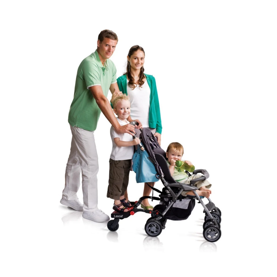 La question souvent posĂ©e lorsqu’arrive un nouvel enfant est : « comment faire avec mon ainĂ© encore trop jeune pour marcher longtemps ? ». La solution est la planche BuggyBoard mini. Elle est compatible avec la majoritĂ© des poussettes et s’installe facilement Ă l’aide d’un système brevetĂ© Lascal Easy-fit. Elle offre un espace confortable oĂą votre enfant pourra aisĂ©ment placer ses 2 pieds, et ainsi installĂ©, à l’arrière de la poussette, entre vos deux bras, il sera en toute sĂ©curitĂ©, mĂŞme dans les lieux très frĂ©quentĂ©s. Une fois les connecteurs installĂ©s, la planche BuggyBoard mini s’attache et se dĂ©tache en toute simplicitĂ©, sans rien dĂ©monter, pour plier votre poussette. Sans compter que, si vous ne l’utilisez pas temporairement, vous pouvez la replier vers le dossier de la poussette Ă l’aide d’un crochet fourni. La planche BuggyBoard mini possède de grandes roues et d’excellentes suspensions pour faciliter votre conduite et apporter un maximum de confort Ă votre enfant. C’est parti pour de belles promenades…ou simplement pour aller Ă l’école.Â