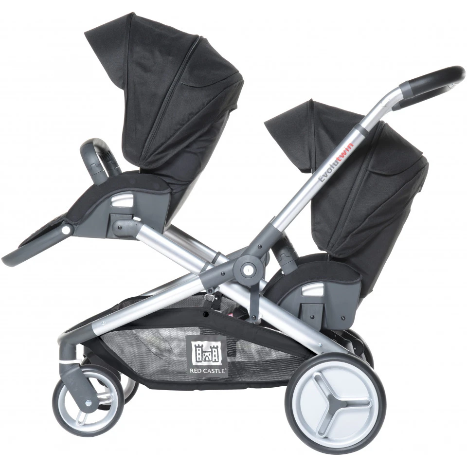 Avec son châssis exclusif rétractable en 1 seconde, son guidon réglable en hauteur, son grand panier accessible, son pliage facile et compact la poussette Evolutwin offre une grande maniabilité et un confort optimal pour les parents.