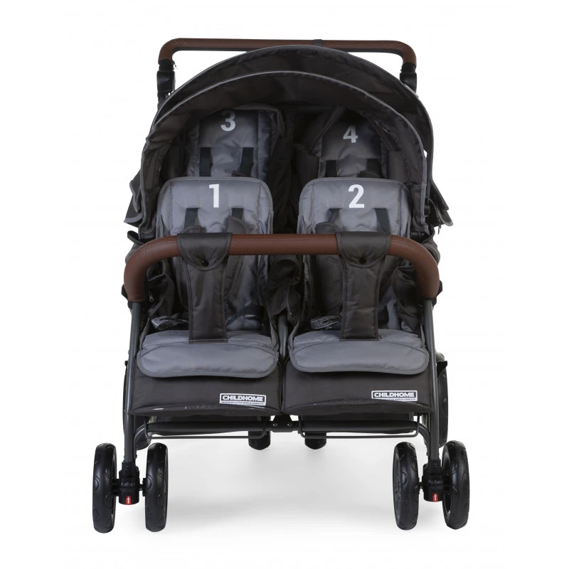 Véritable bénédiction pour les crèches et les assistantes maternelles ou encore parents de quadruplés, la poussette Quadruple Autobrake de Childhome permet de promener 4 enfants en toute sécurité ! La poussette Quadruple de Childhome est spécialement conçue pour faciliter les sorties des enfants à partir de 6 mois et jusqu’à 15 kg (environ 3 ans).