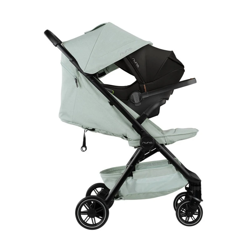 La poussette TRVL peut être utilisée dès la naissance en y adaptant le siège-auto Pipa Nuna directement sur la barre, pas besoin d’adaptateurs supplémentaire !