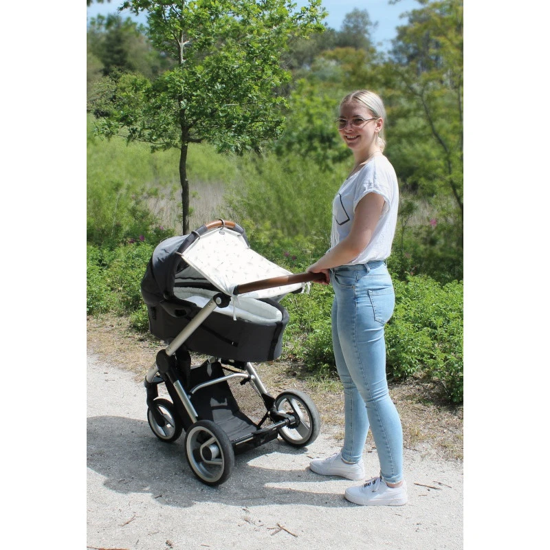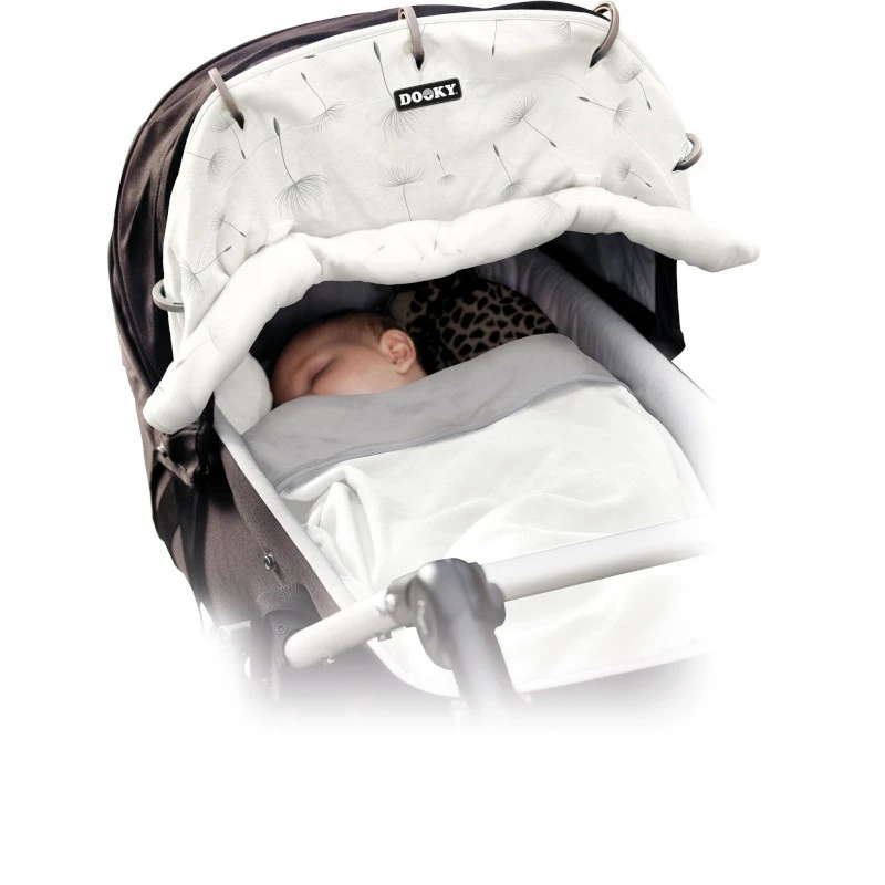 Pour vos promenades en ville, en bord de mer ou à la campagne, pensez à emporter votre protection anti-UV pour poussette Cover Design Dooky. Elle s’accroche rapidement, grâce à ses 5 anneaux, sur la plupart des capotes ou poignées de poussettes, landaus ou sièges autos type « cosy ». Elle les transforme en un havre de paix où votre petit est à l’abri du monde extérieur, de la lumière et du climat.