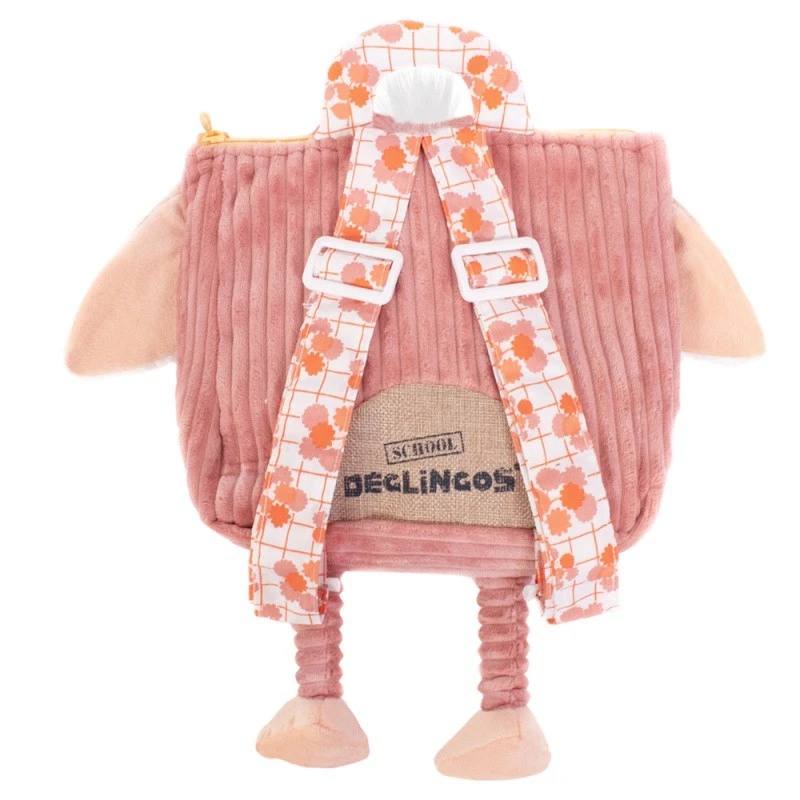 Le sac à dos velours Pomelos l’autruche Les Déglingos est hyper mignon ! Il est tout en velours côtelé rose, avec sur le rabat, la jolie tête de l’oiseau : ses beaux yeux, son bec délicat et ses poils sur la tête, rien ne manque. Sans oublier… deux petites pattos sous le sac et deux autres sur le côté !