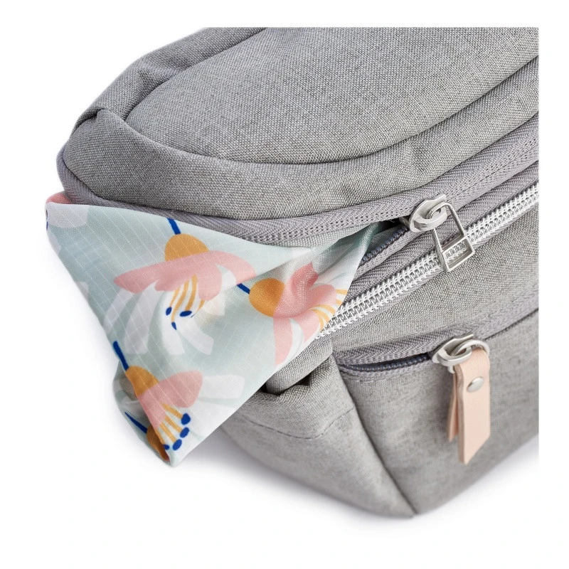 - Poche avant zippée avec un accès facilité pour les affaires de maman.