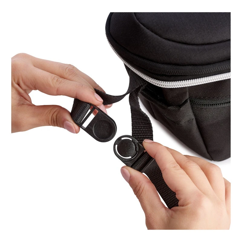 - 4 manières différentes de portage : fixé sur le guidon d’un vélo ou d’une poussette il peut également être porté à la main ou en mode banane.