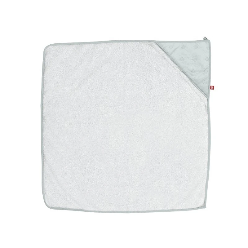 Elle est dans les tons de blanc, avec une jolie petite capuche grise ! La sortie de bain est un indispensable du quotidien de bébé, et ce dès la naissance, n’oubliez pas de la prendre dans votre valise de maternité !