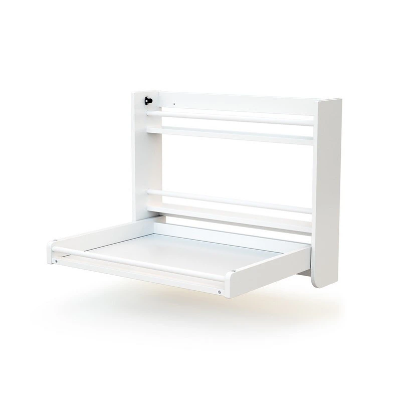 La table à langer murale Confort At4 offre deux étagères de rangement, pour avoir le nécessaire à portée de main, tel que les produits de toilettes, les couches ou les vêtements, ainsi qu’un large espace de change avec traverses entre lesquelles vous pourrez encastrer le matelas à langer de votre choix (non fourni).