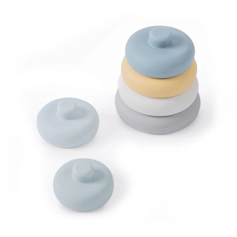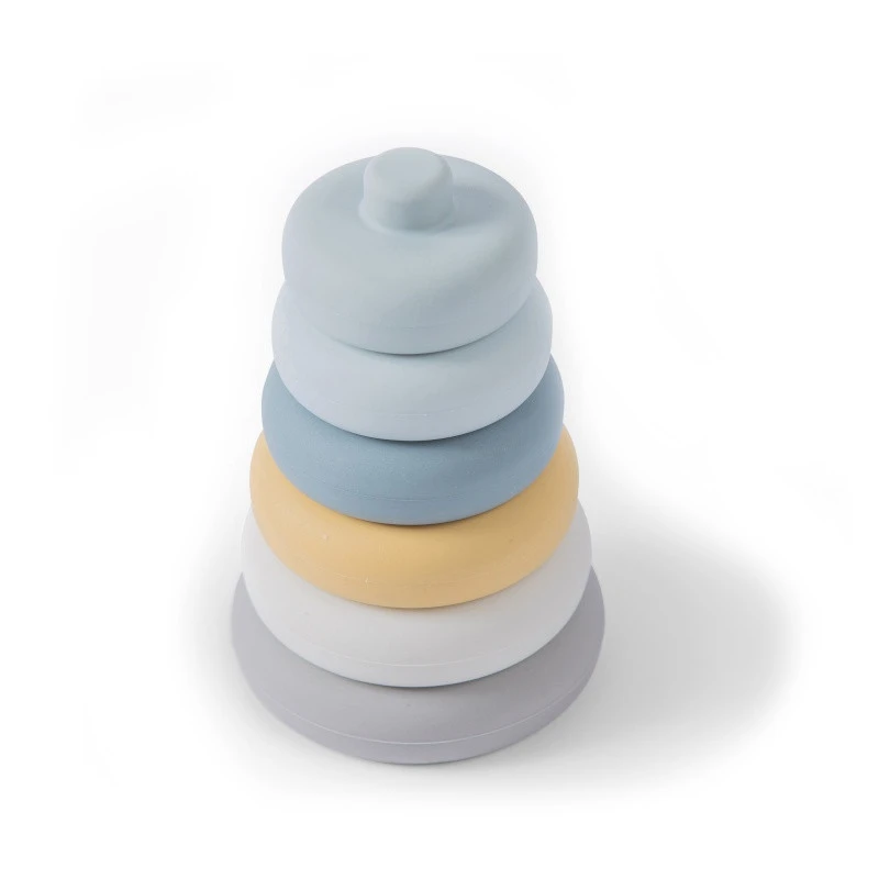 La tour de Minene est uniquement composée de silicone. Cette matière a l’avantage d’être souple, résistante et sans danger pour votre bébé, même s’il décide de mettre les pièces de son jouet à la bouche.