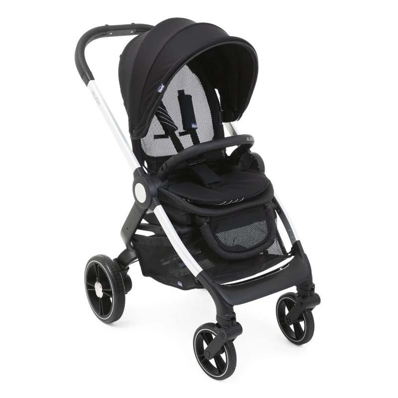 - Insert en maille filet dans la capote pour une bonne circulation de l’air dans la poussette.
